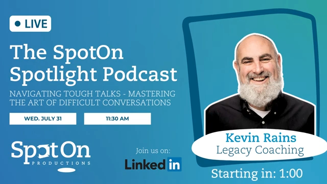 On this episode of The SpotOn Spotlight, “Navigating Tough Talks: Mastering the Art of Difficult Conversations,” we welcome Kevin Rains, a distinguished business coach and founder of Legacy Coaching as well as a Professional EOS Implementer. Kevin brings his extensive expertise to help us uncover the secrets to mastering difficult conversations.